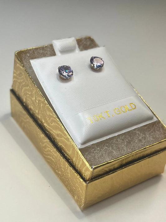 10k Yellow Gold 6mm Purple Zirconia Earrings