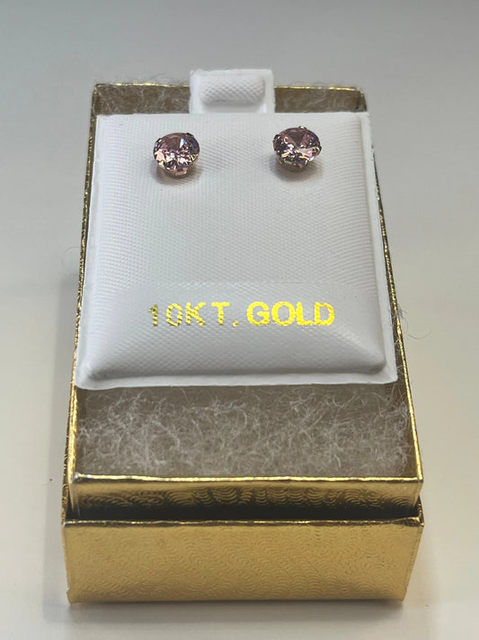 10k Yellow Gold 6mm Rose Gold Zirconia Earrings