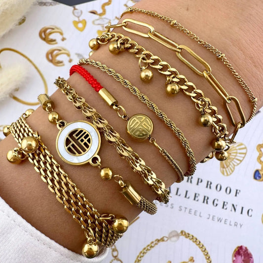 Top class waterproof, no-tarnishing, 18K gold plated stainless steel jewelry with three...