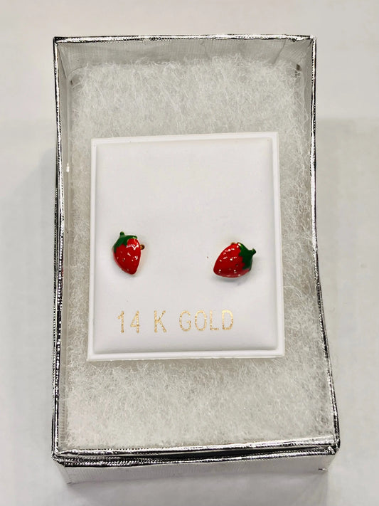 14K Gold Strawberry Earrings with lock. Newborns/Girls