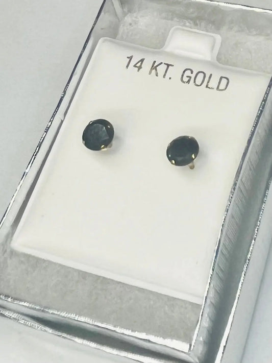 14KT Gold Earrings / Pantallas de Oro 14k Black Round