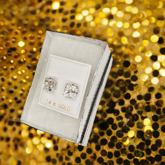 14K Gold Square Earrings / Pantallas en Oro 14KT